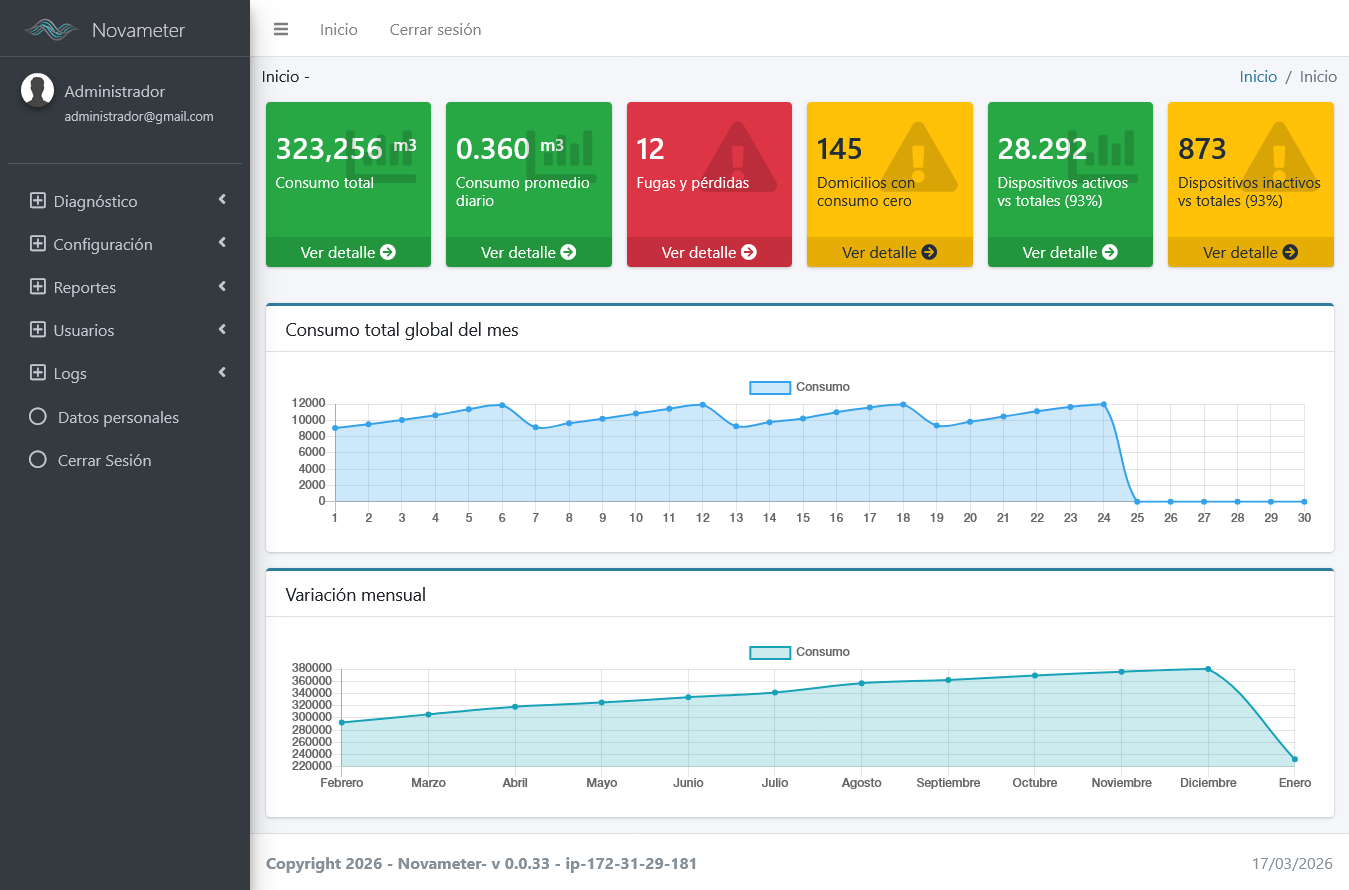 Inteligencia de Datos: Integración nativa con nuestra plataforma, validando la recolección de métricas clave como el caudal mínimo nocturno, un indicador fundamental para que las distribuidoras puedan detectar fugas ocultas en tiempo récord.